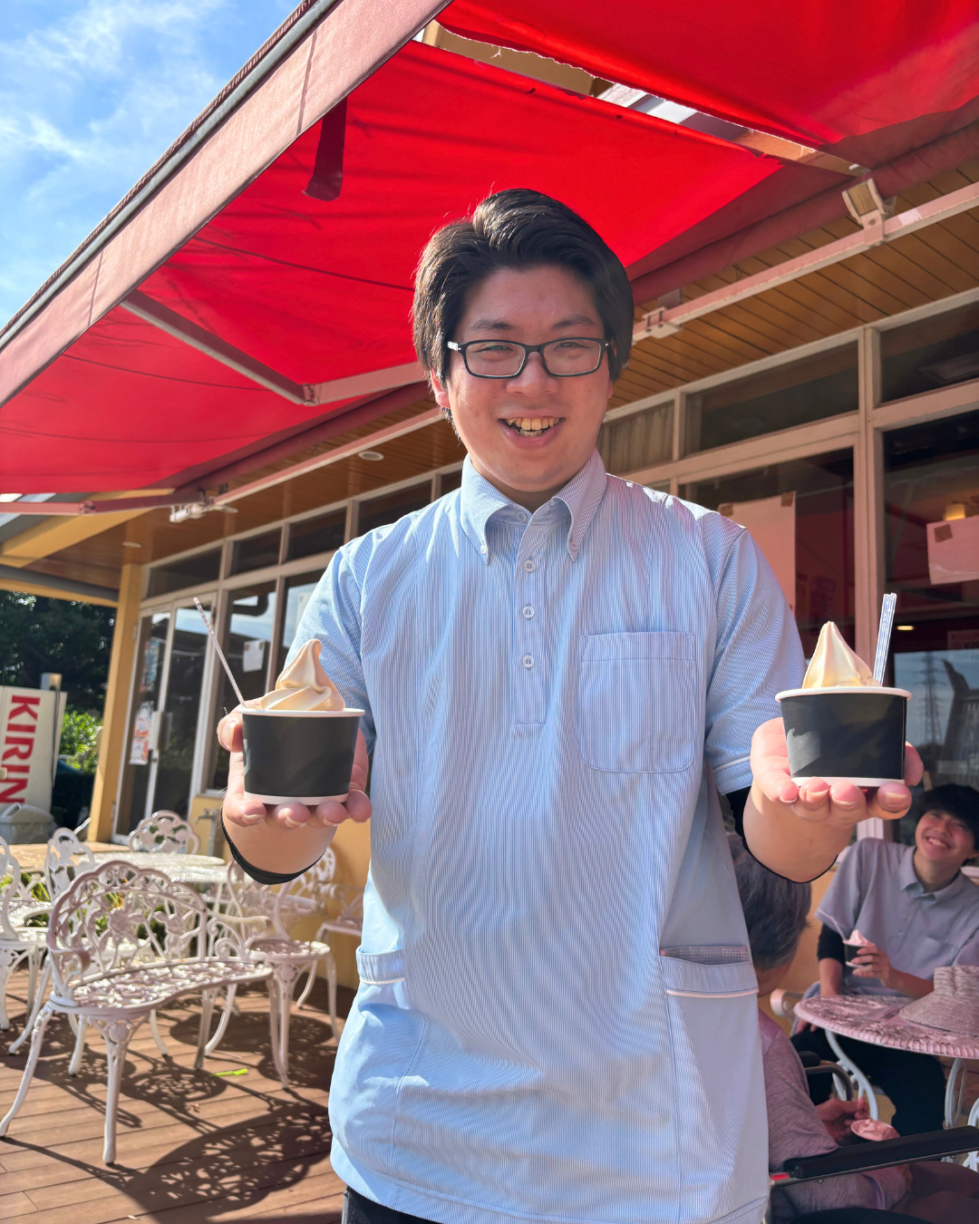 おやつタイムには、楽しみにしていたソフトクリームをみんなでいただきました。