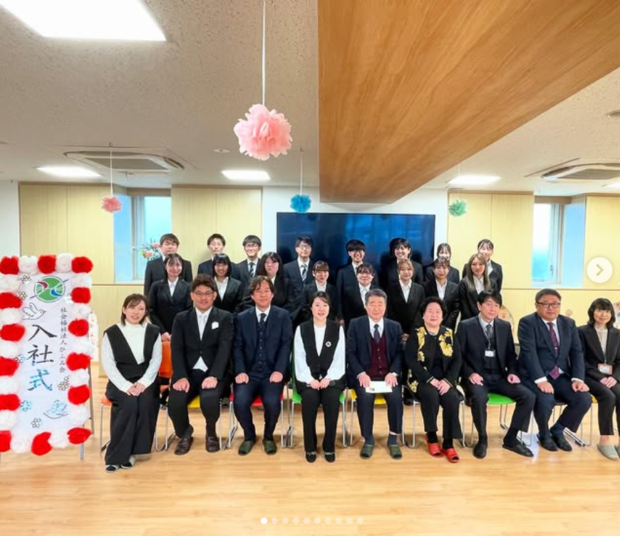 4月1日、ひふみ会では保育・障害福祉・高齢介護の3部門合同で入社式を行いました。