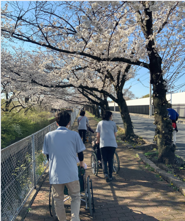 そして、現場に入って最初のお仕事は、入居者様との「お花見」。
