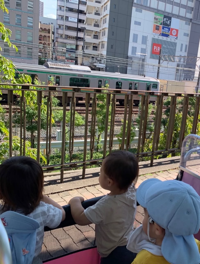 途中では、大好きな電車を間近で見ることもでき、目を輝かせていた子どもたち。