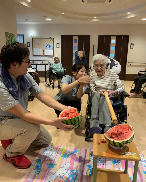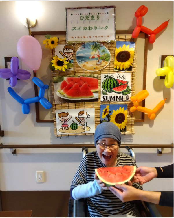 暑い夏を元気に乗り切ろうと、親光では各ユニットで「スイカ割りイベント」を開催しました。