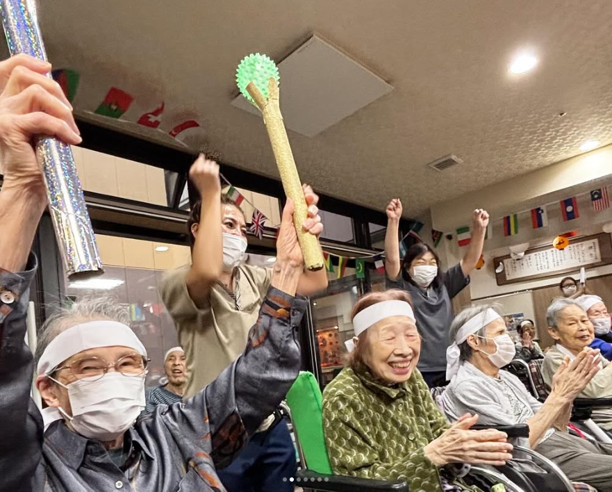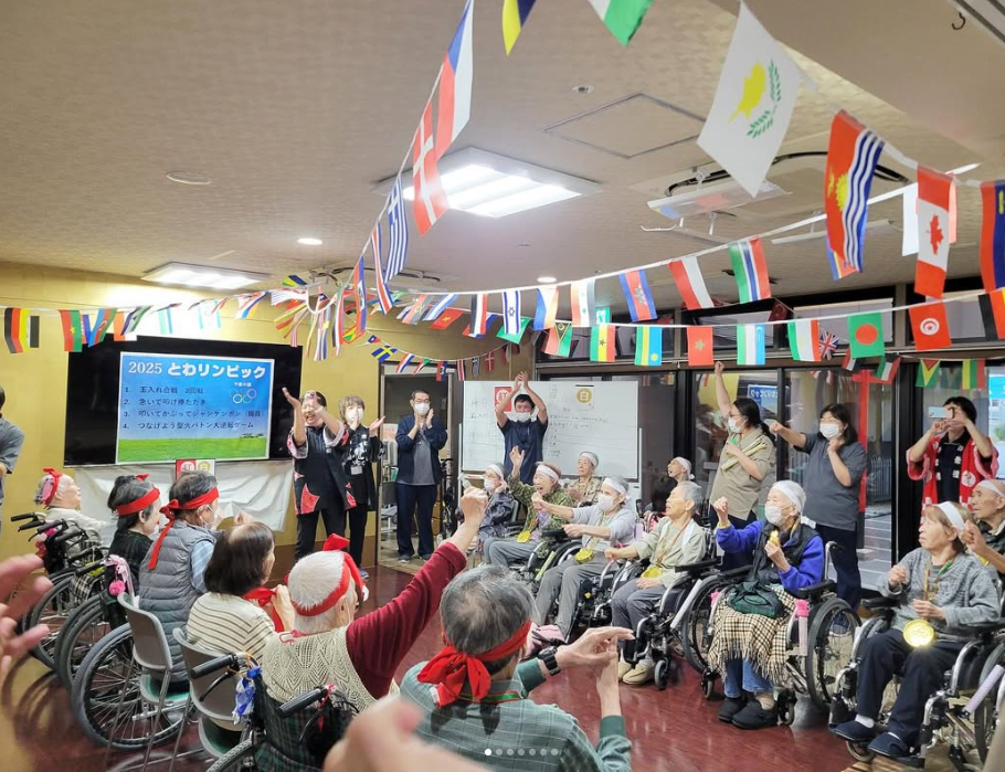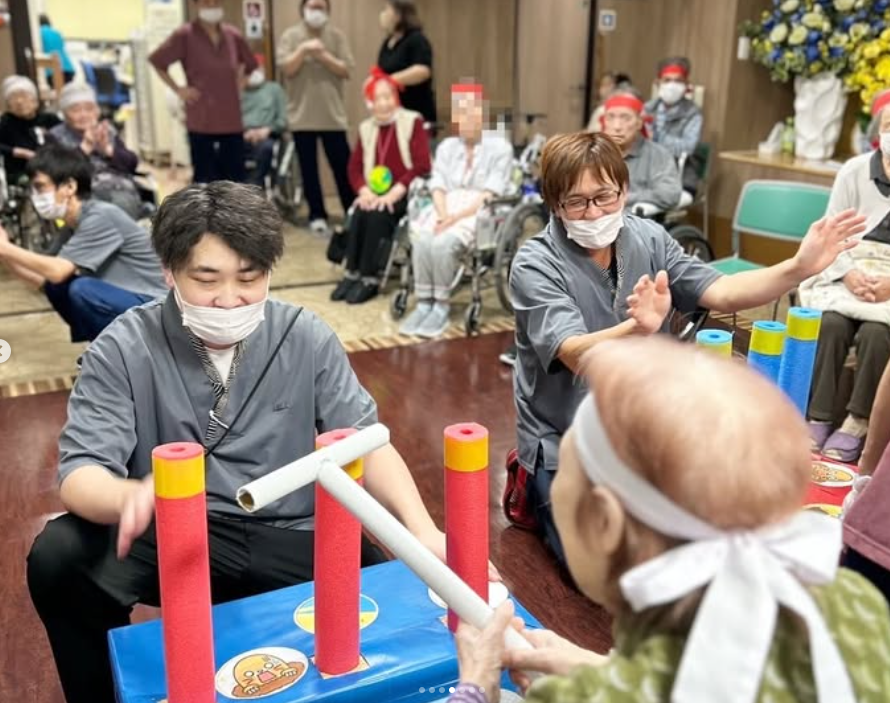 砲丸投げに輪投げ、ボーリング、棒叩き、聖火バトンリレー、玉入れなど大盛り上がり! 職員も負けじと「叩いてかぶってじゃんけんポン!」で白熱対決 新入職員さんへの金メダル贈呈や参加賞のおまんじゅうに、みな様ニッコリ★ 拍手と笑顔があふれる、熱い一日になりました!