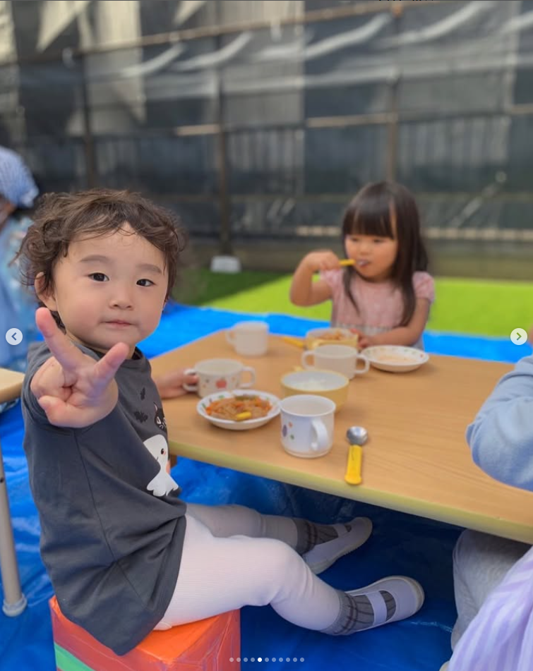 カルチャー保育園恒例✨ 2歳児クラスの『青空ランチ』の様子をご紹介します♪ 園庭で青空を見ながらみんなでごはんを食べました★ みんなモリモリ食べていたね!