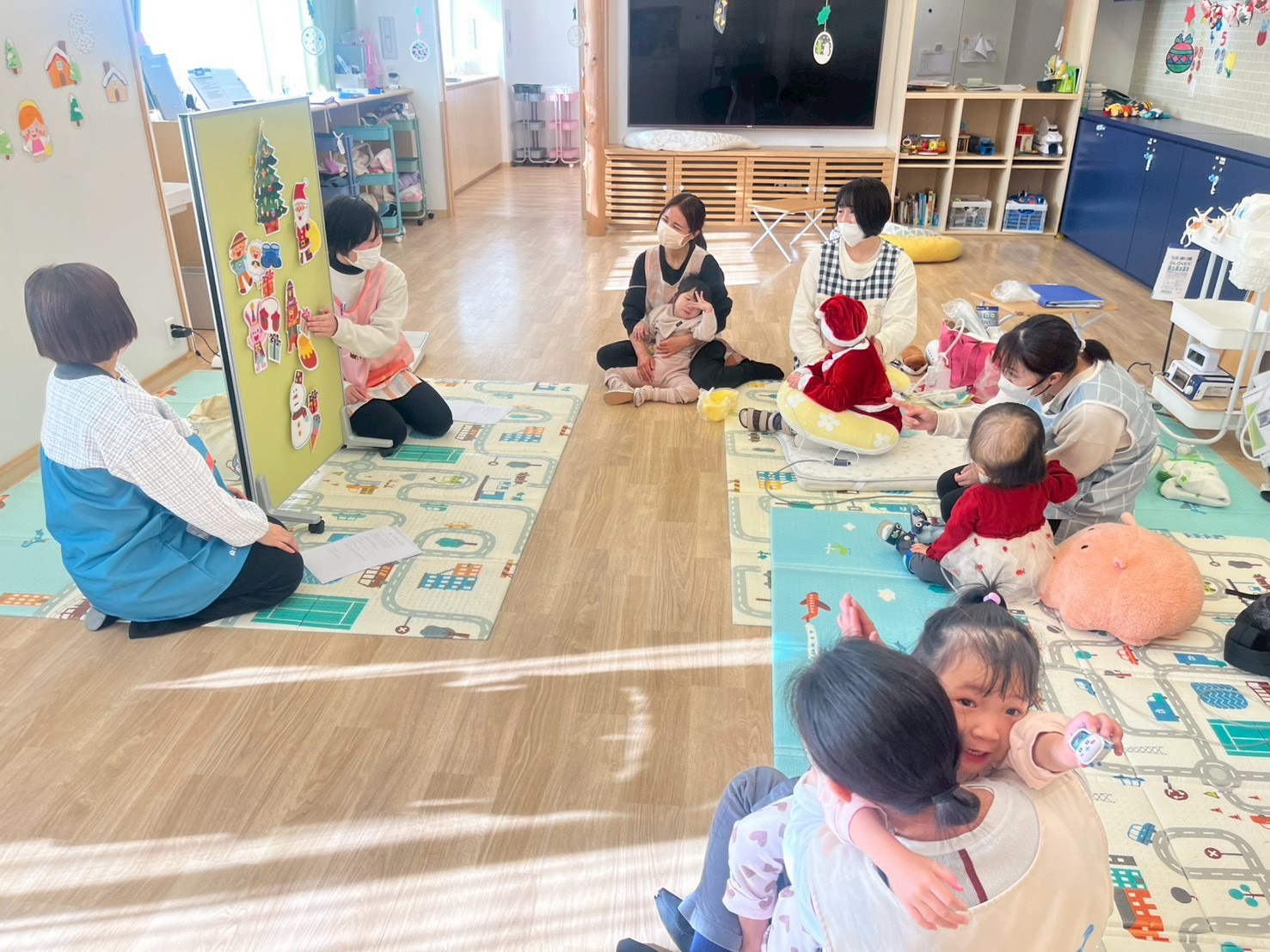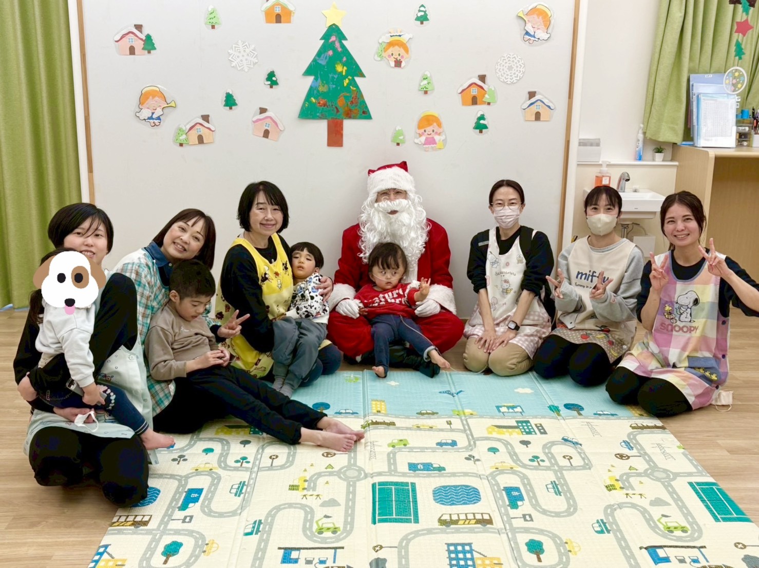 パネルシアターを使ってクリスマスの世界を味わっているとどこからか鈴の音が.... みんなで耳をすましているとサンタさんがプレゼントを持って登場!