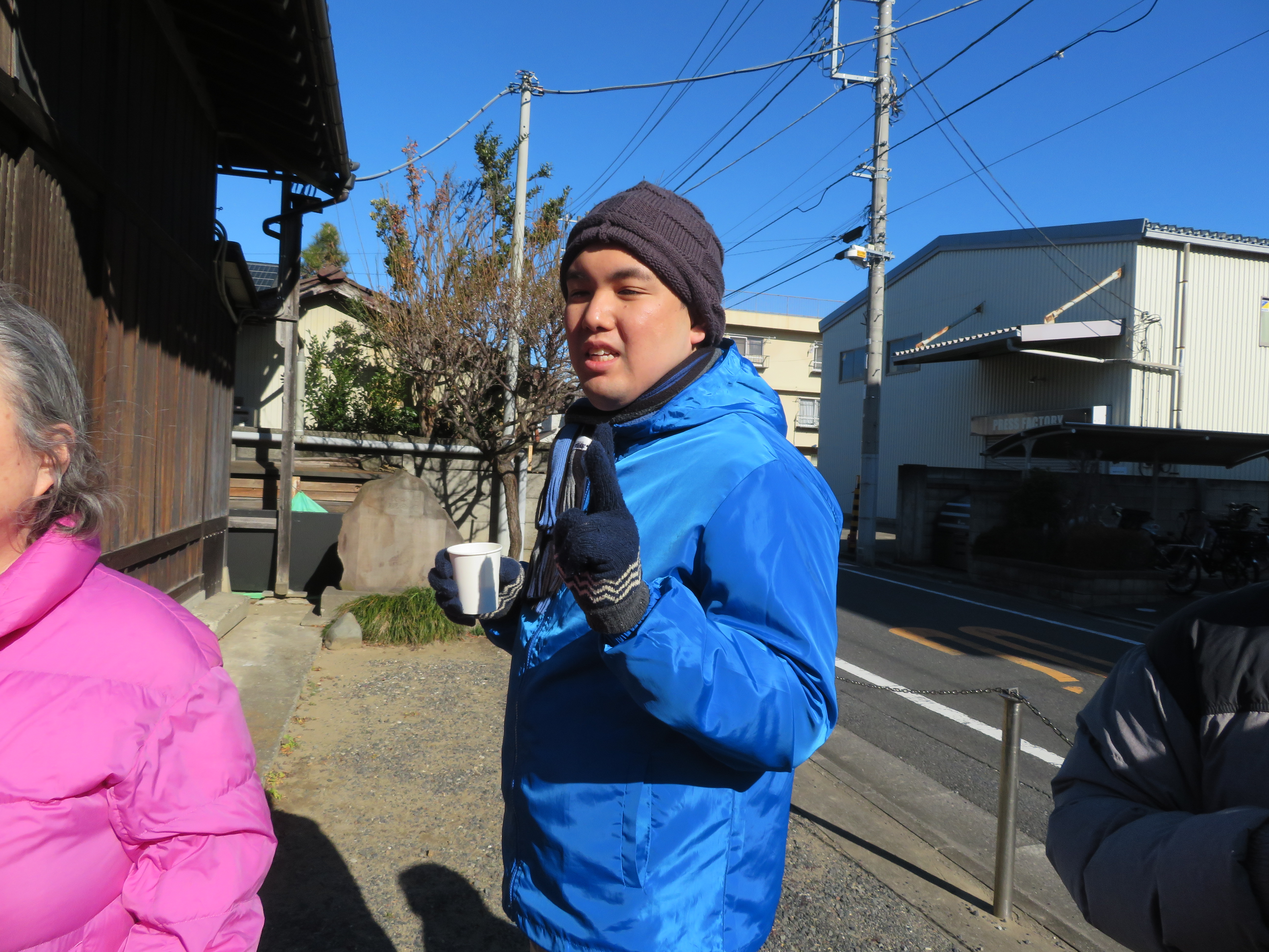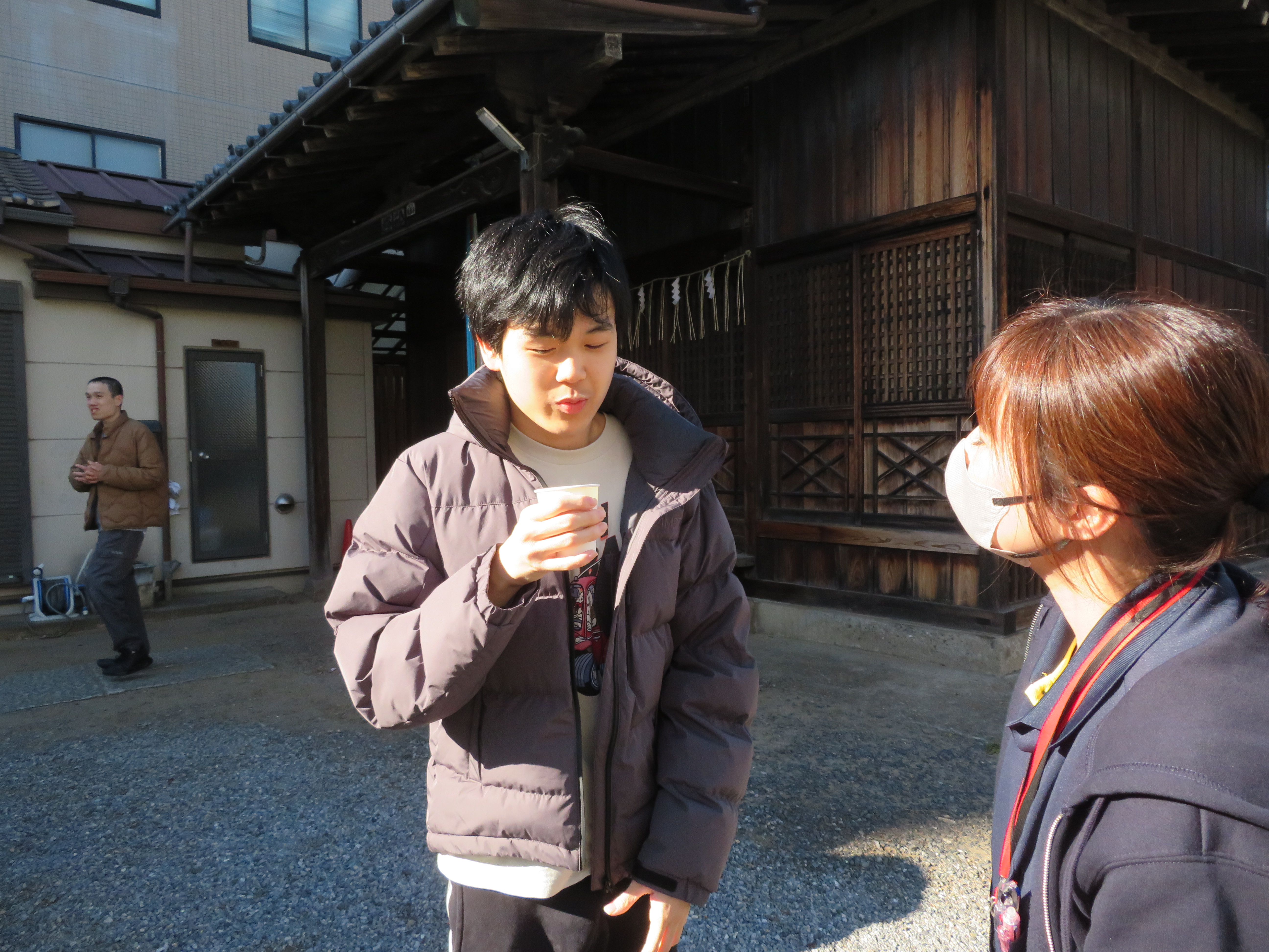 東北野神社へ行き、お参りの後には温かいコーンポタージュで冷えた体を温めました!