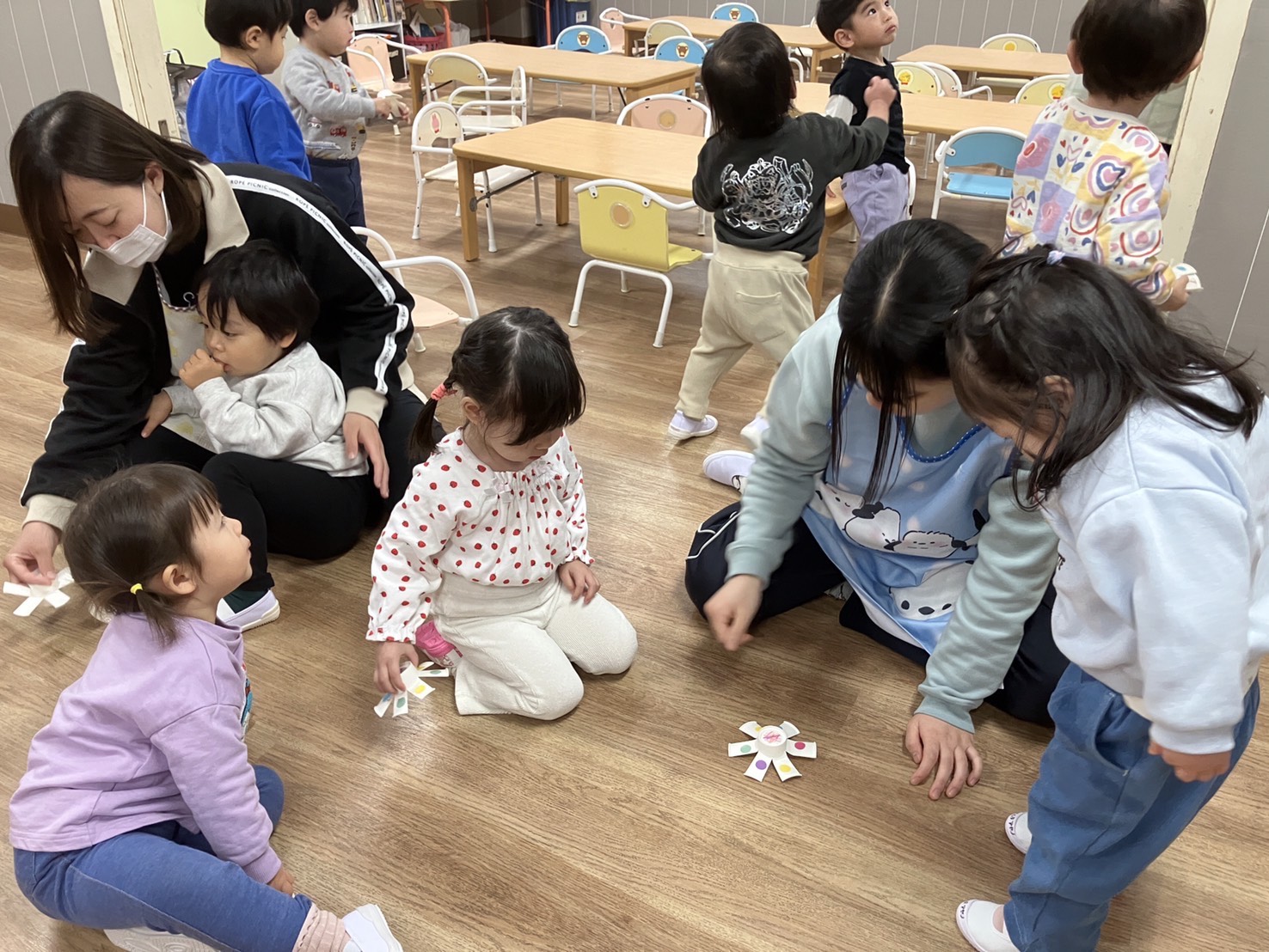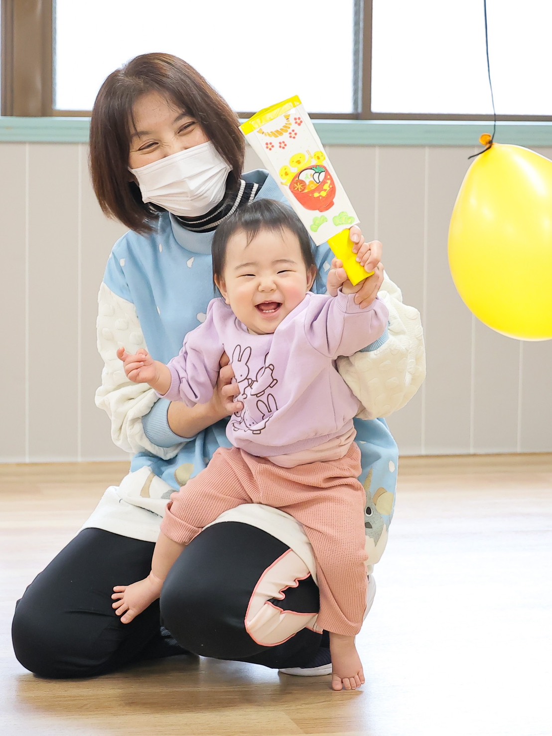 0、1歳児クラスのお友だちは 羽根つきやコマ回しなどお正月遊びを楽しみました♪