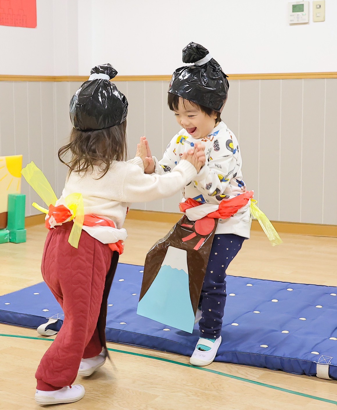 2歳児クラスのお友だちは 「はっけよーいのこった!」の声に合わせお相撲トーナメントを行いました。 優勝した横綱は金杯を持ちとても嬉しそうでした★