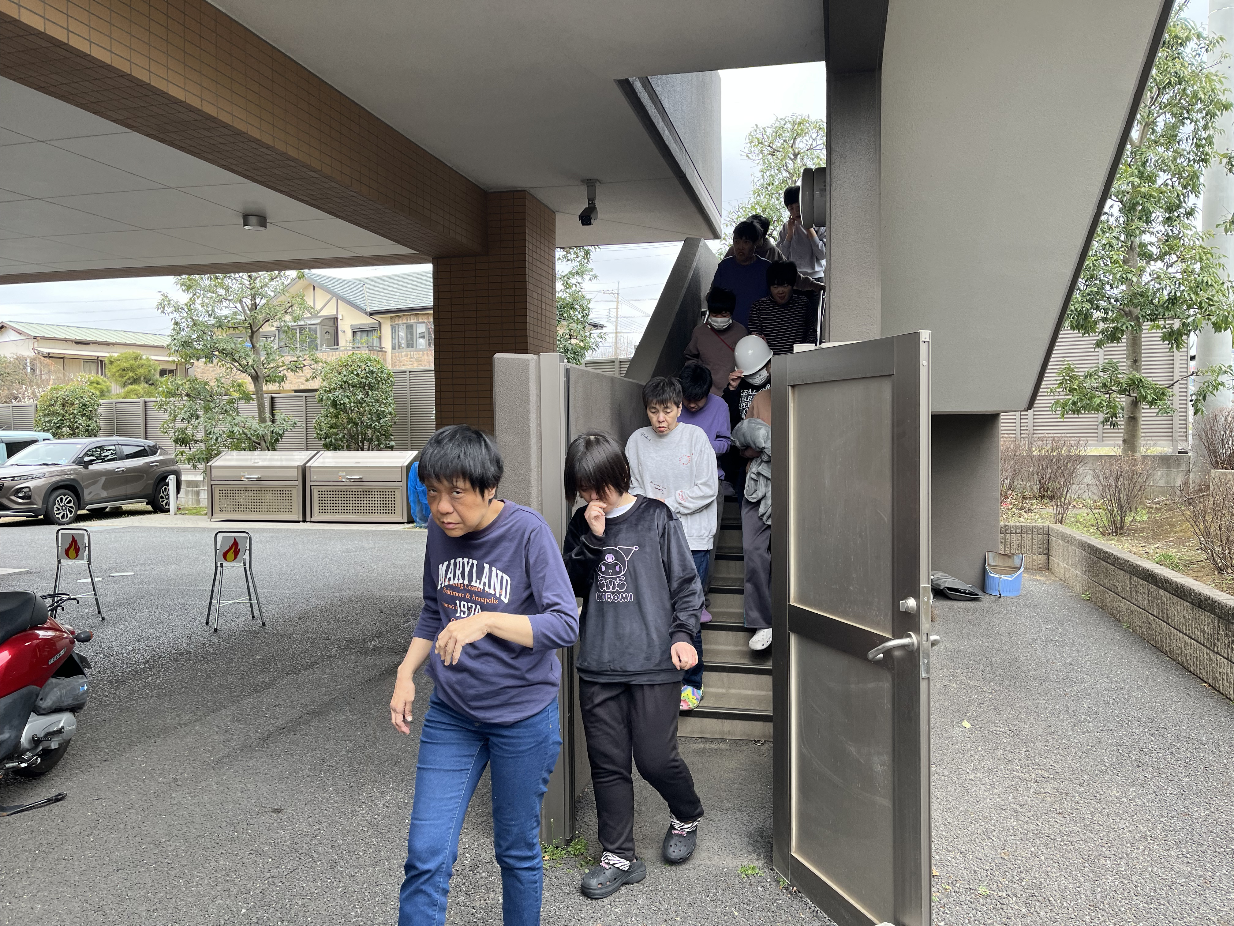 利用者の皆さんにもご協力いただき、実際の災害を想定しながら安全な避難経路や動きを確認しました。