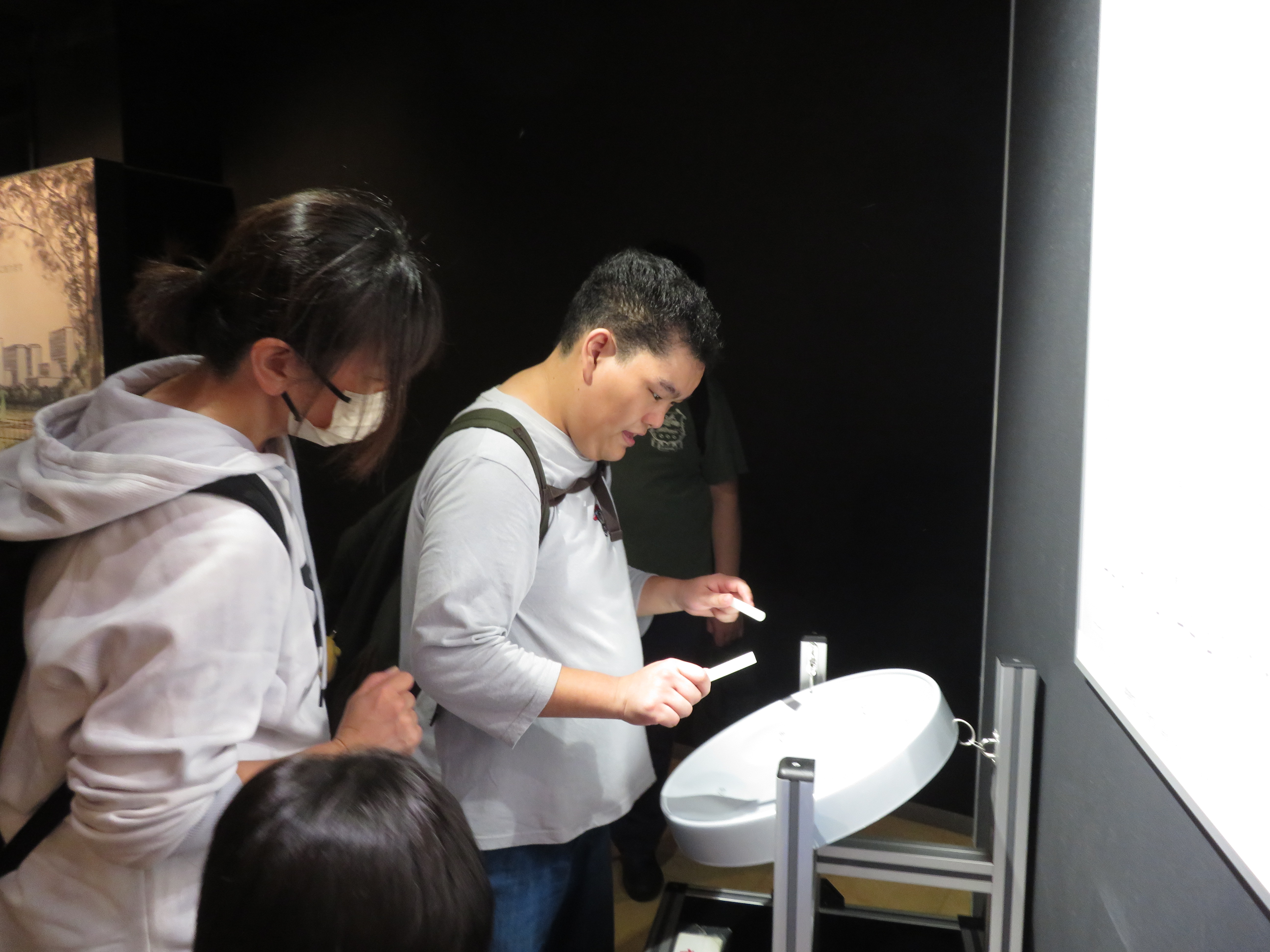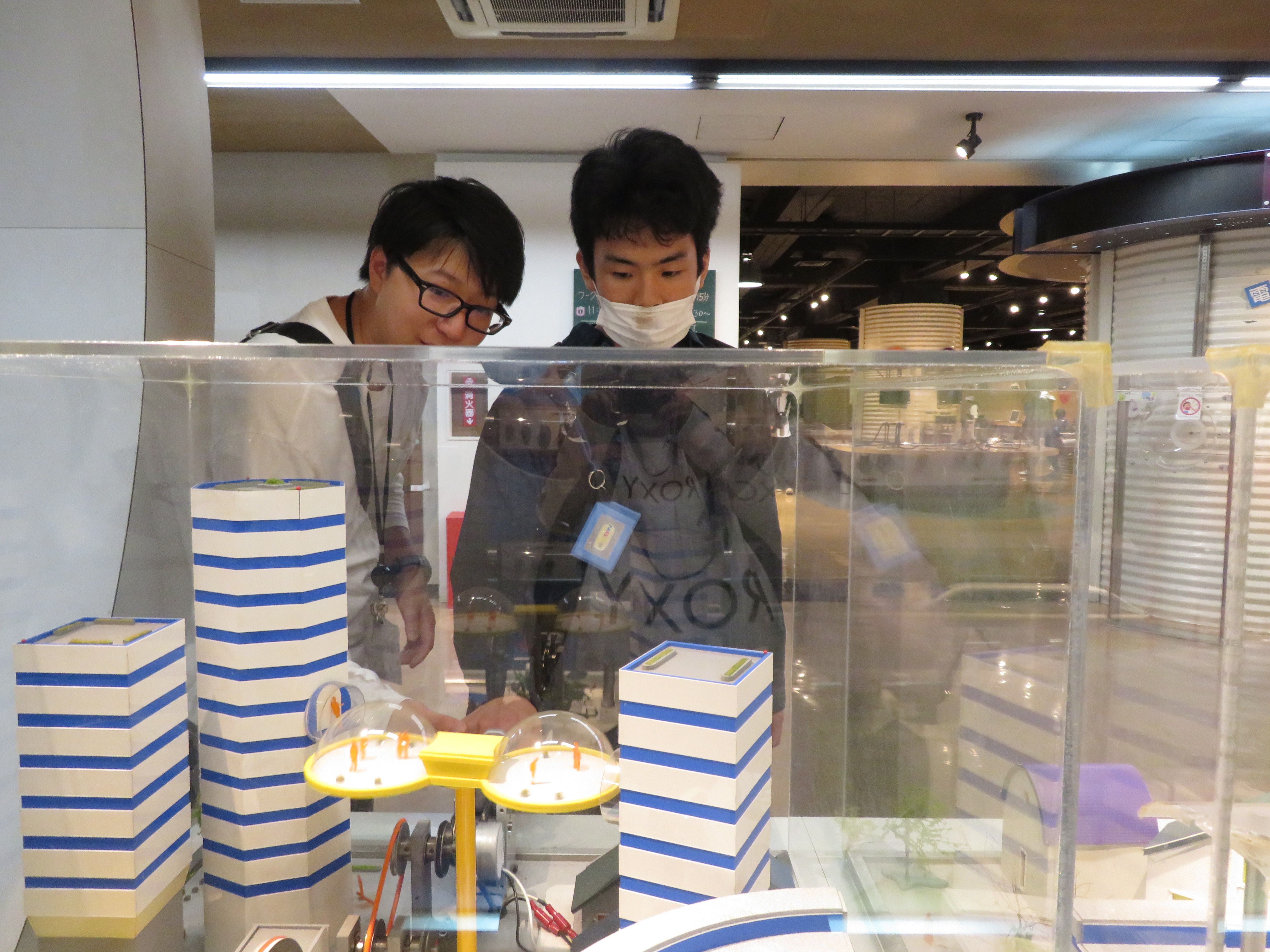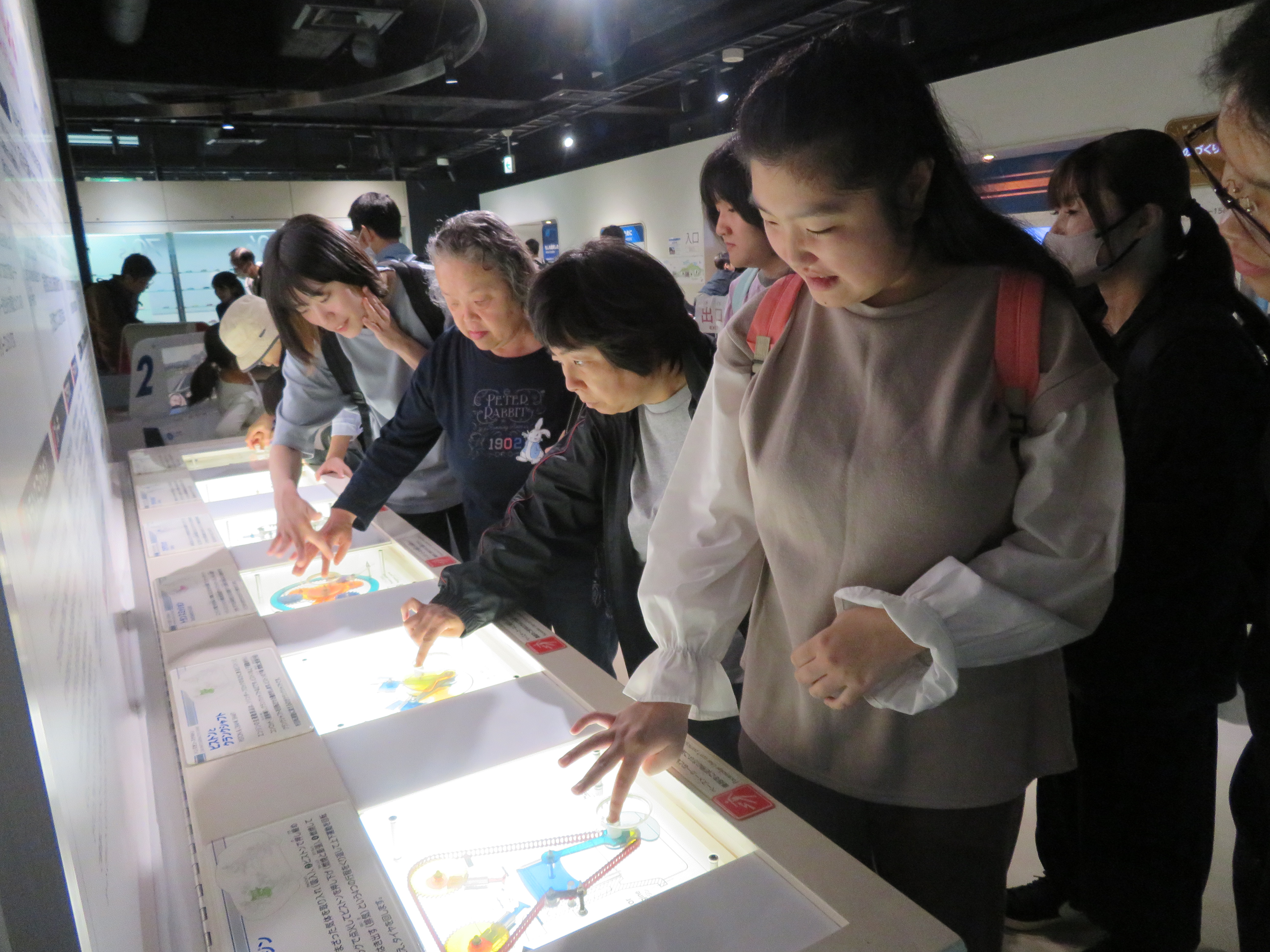 技術館では、自動車の運転体験や自転車で発電、大きいシャボン玉の中に入ったり色々な体験をしました。