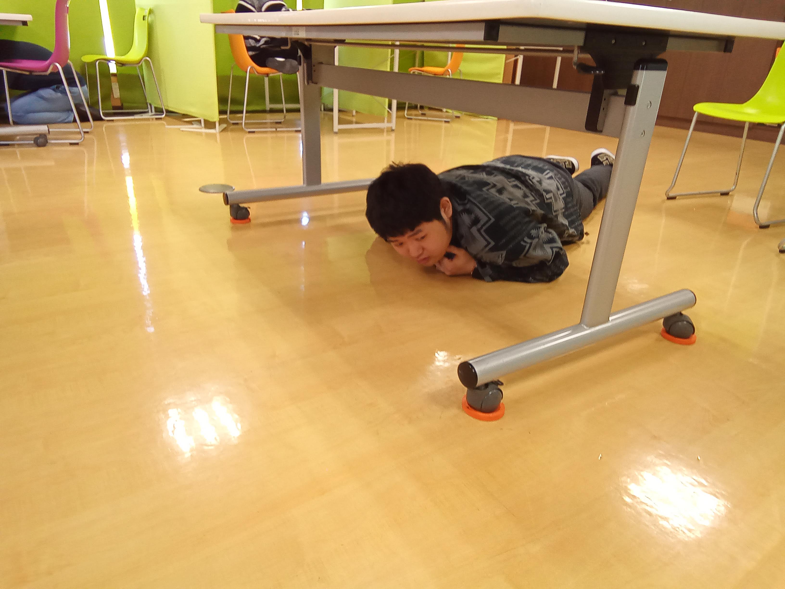 今回は、<地震発生時の安全確保訓練>の様子です。